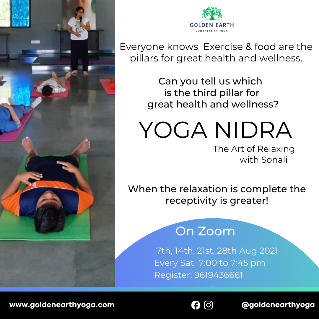 Golden Earth conducted Yoga Nidra series for people in all age groups. It was conducted every Saturday from 7th August 2021. Yoga Nidra is also called as the psychic sleep. It is one of the best yogic intervention mechanism to cope with the problem of stress! Drop in sessions are always open and you can connect with us to join!